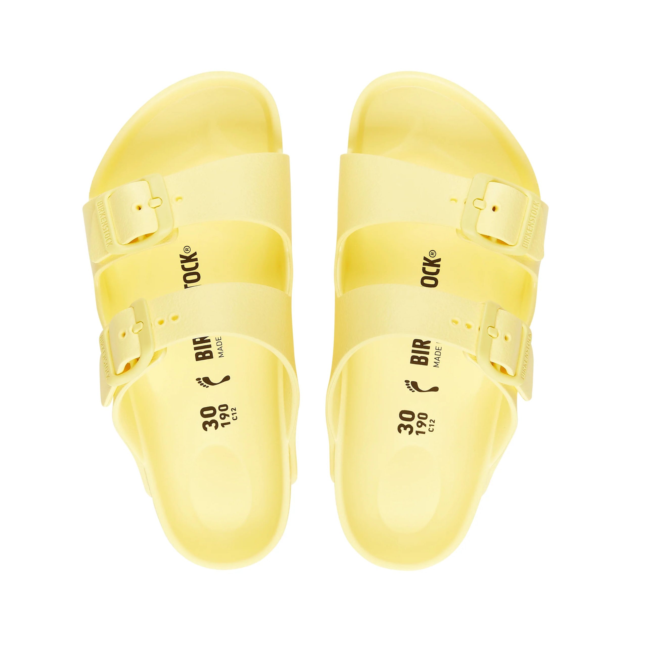 The legendary two-strap design from Birkenstock – the Arizona for kids. Modeled on the cork original. this sandal is made from ultra lightweight and highly flexible EVA. These sandals are shock absorbing. waterproof. and skin-friendly. Wear them at the beach. in the backyard. or by the pool. Sandals for all-day play!