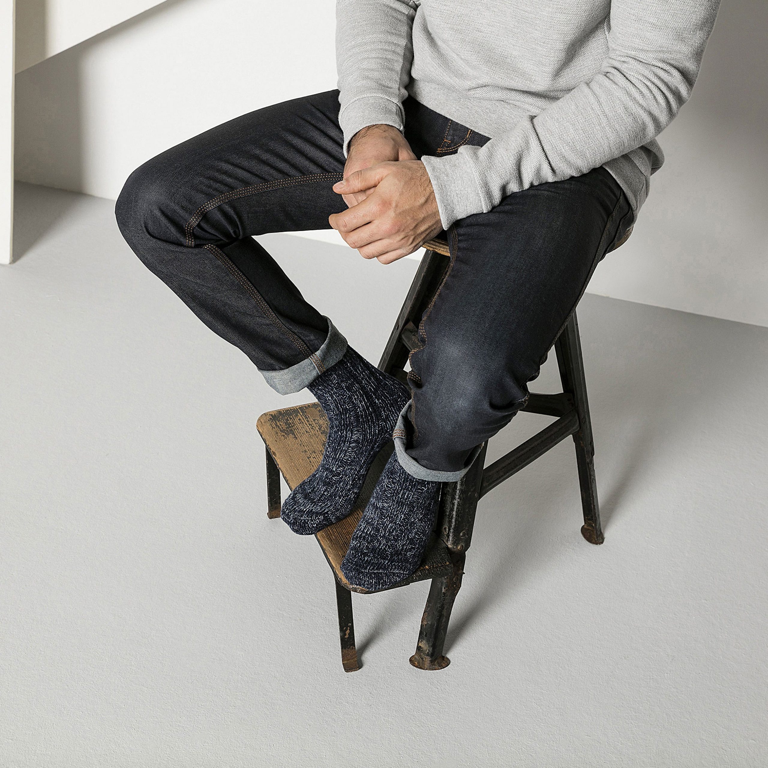 The Birkenstock Twist sock features an authentic wool look with a chunky-knit optic. The material comes as a real surprise. Thanks to the high cotton content. the socks are extremely soft and keep feet cosy and warm. The pressure-free. elasticated cuff results in a comfortable fit.