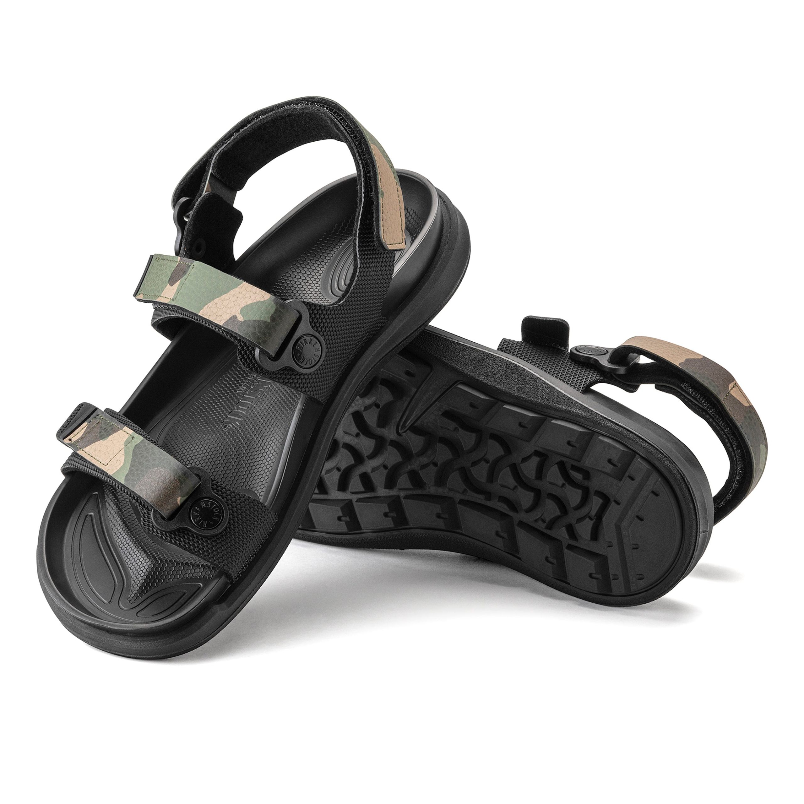 The Kalahari boasts a high level of comfort and great functionality. A back strap sandal with hook-and-loop fasteners and a PU/TPU outsole added for increased traction and durability. The Cross Country version is designed for Birkenstock fans who are active and looking for some extra grip to their sandals. The Cross Element Adventure version goes a step further by making the style water-ready. so whether you’re trekking over rocks or through rivers. your feet will always be comfortable and supported.