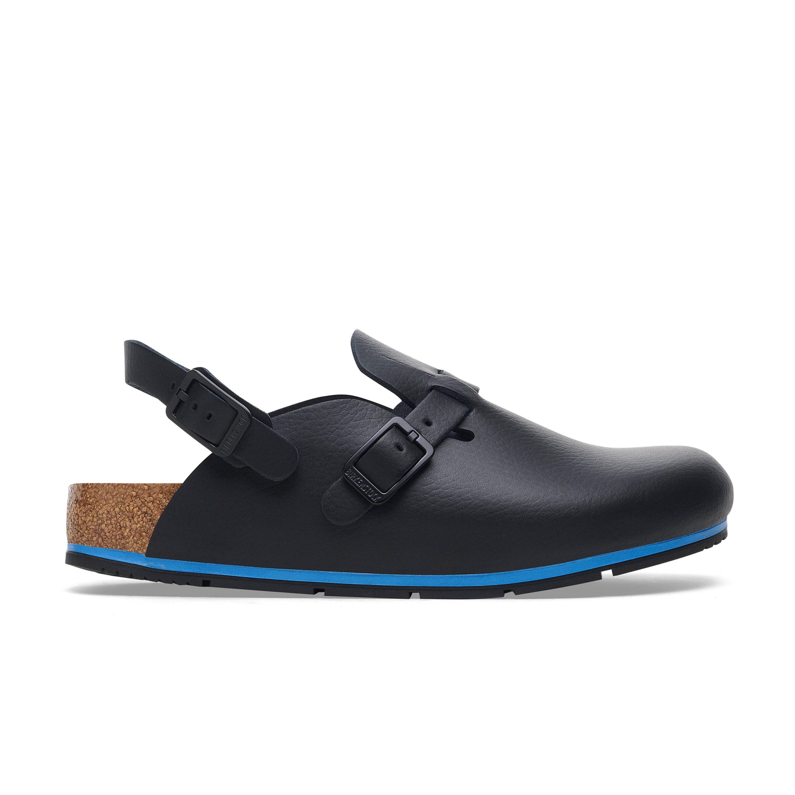 The Kay Pro offers all the advantages of Birkenstock’s classic Tokio and Boston models in one. The upper instep strap can be folded back if required. thus providing additional support as a backstrap. The sole is nonslip. promotes the ideal rolling motion. and is also oil- and grease-resistant. The EVA midsole in the leather version has additional soft padding that reliably and permanently cushions the foot with every step – even if your feet are sensitive. This high degree of flexibility and sure-footedness is in great demand in particular in medical environments.