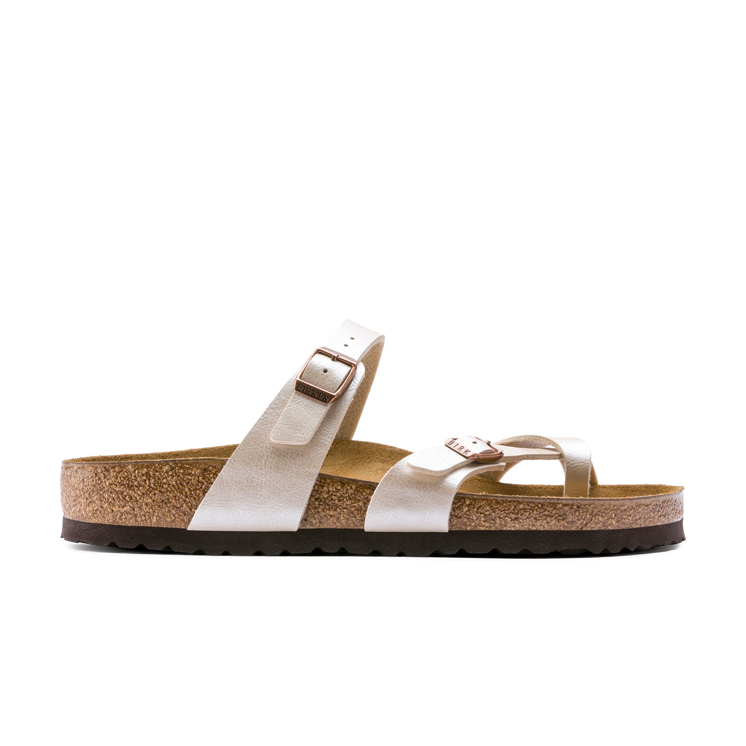 The Birkenstock Mayari thong sandal is a distinctive classic model with a toe loop and cross strap. The combination of anatomically shaped footbed and secure adjustable instep strap makes Mayari extremely wearable in a wide range of situations. Classic support and adjustability. designed beautifully.