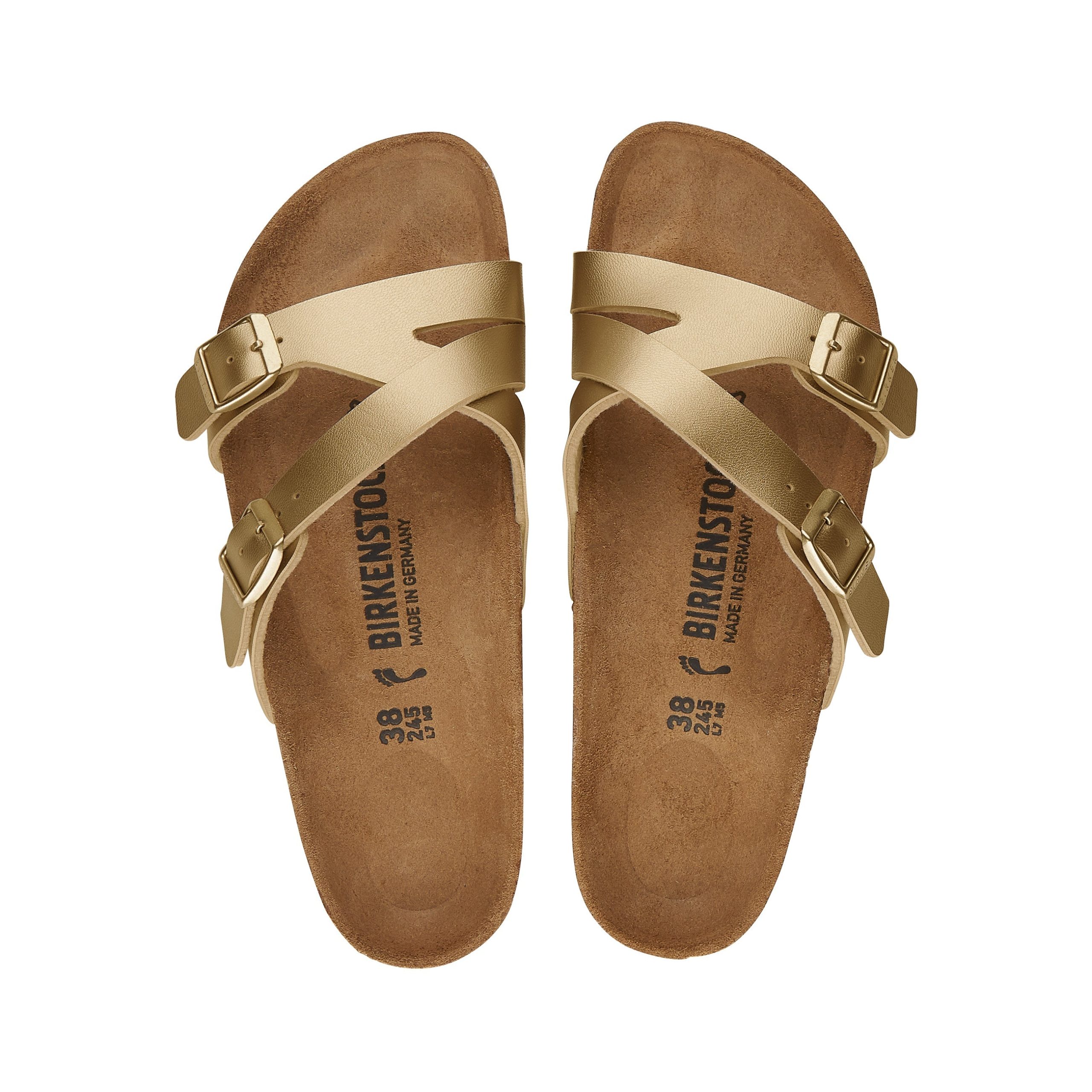 A geometric designed strap sandal. the Yao couples style with a touch of luxury and features the iconic Birkenstock footbed to provide both comfort and flair.